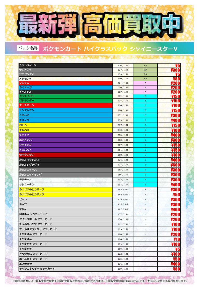 ট ইট র アメニティードリームなんば2号店 シャイニースターv の色違い Ssr S の買取募集中 リザードンv Ssr 7 500円 リザードンvmax Ssr 16 000円 ガラルジグザグマ S 700円 ガラルマタドガス S 700円 Sは最低でも100円で買い取りますので 不要なものが